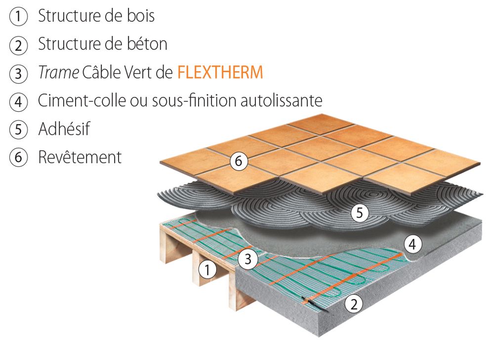 • Garantie à vie lorsqu’elle est installée par un installateur certifié par FLEXTHERM (ou garantie limitée de 25 ans en cas contraire)