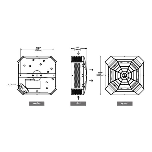 FABRICATION • boîtier en acier satiné de calibre 22 • ventilateur de type hélicoïdal à faible niveau sonore • protection thermique à réenclenchement automatique • moteur fermé et lubrifié à vie