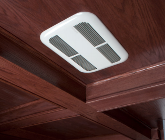 L’aéroconvecteur de plafond RIDEAU D’AIR projette silencieusement sa chaleur au-dessus de nos têtes. Cet appareil unique est idéal pour les pièces où tous les murs sont déjà remplis. Dans une salle de bains, par exemple, le RIDEAU D’AIR peut être installé à la sortie de la douche ou de la baignoire. C’est un appareil formidable pour faire circuler l’air de la pièce où il est installé. Résultat : air en mouvement, meilleure diffusion de chaleur et diminution de la buée sur les vitres et miroirs.