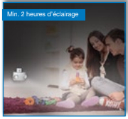 • Fourni un minimum de 2 heures d’éclairage avec une charge complète